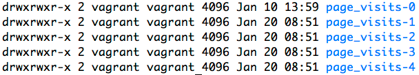 比如,Topic 为"page_visits"的消息,分为 5 个 Partition,其目录结构为:
