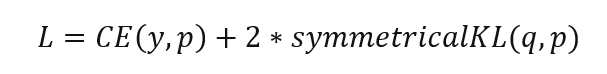 这里CE是交叉熵(Cross Entropy),symmetricalKL是对称KL散度(Kullback–Leibler divergence),y是真实标签的one-hot编码,q是teacher网络的输出结果,p是student网络的输出结果。