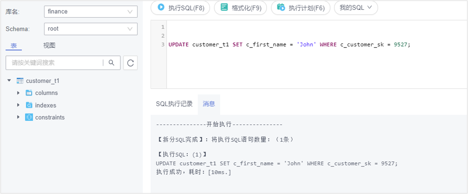 UPDATE customer_t1 SET c_first_name = 'John' WHERE c_customer_sk = 9527;
