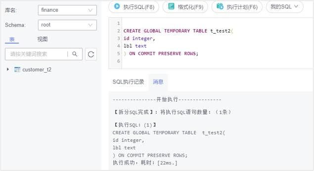 在数据库的SQL查询窗口中,通过执行 CREATE GLOBAL TEMPORARY TABLE 语句来创建临时表。