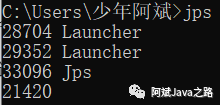 :列出虚拟机进程启动时的JVM参数。比如:-Xms20m -Xmx50m是启动程序指定的jvm参数。