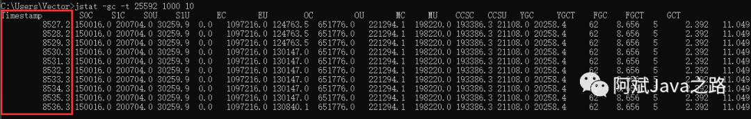 | YGC | 从应用程序启动到采样时young gc的次数 |