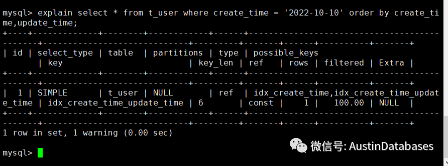 explain select * from t_user where create_time = '2022-10-10' order by create_time,update_time;