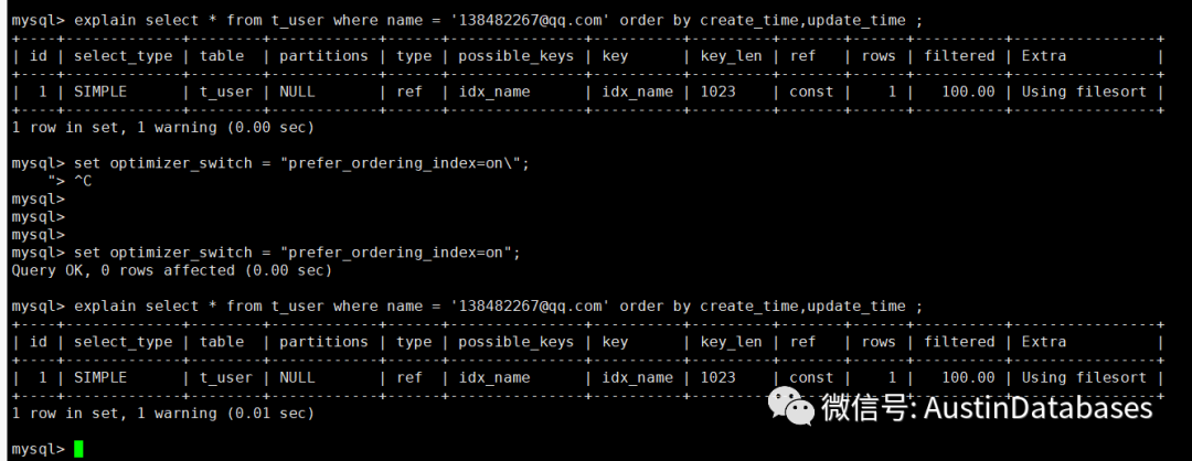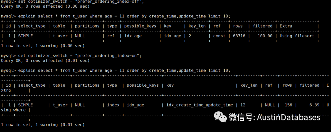 在有合适的索引的情况下,打开perfer_order_index 在查询最终的执行计划没有区别。
