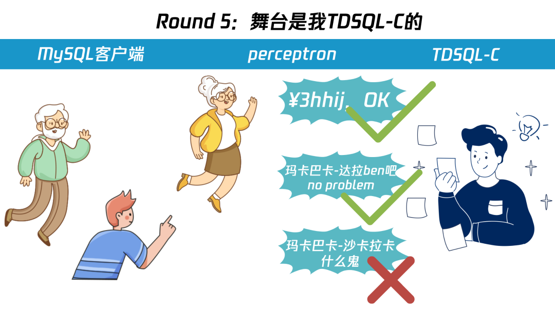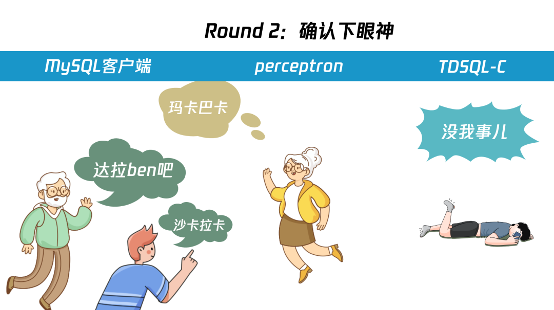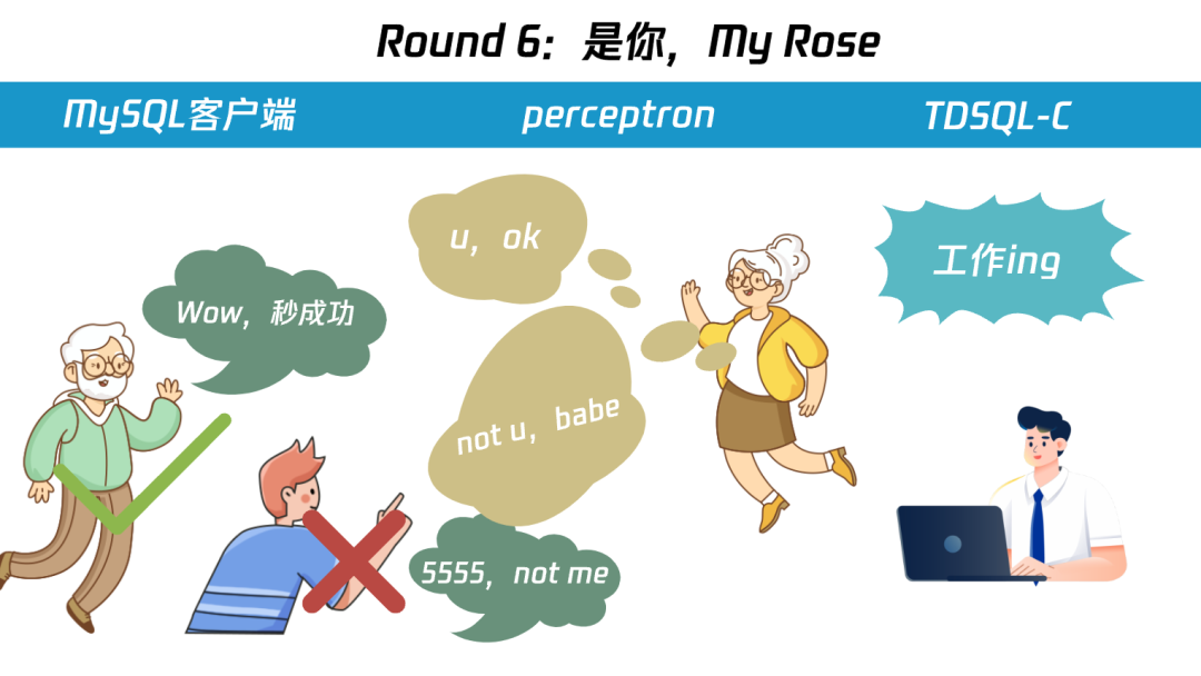 由于 preceptron 并没有存储用户的账号密码,所以无法校验 “登录解答 A” 是否正确,但 preceptron 能区分客户端是 MySQL 客户端,还是其他类型的客户端(preceptron 在机器学习界是分类器,区分不同类型的客户端,这也是我们以它命名的原因之一)。