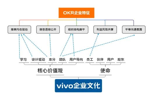 大概是在 2013 年底,一些创业者在硅谷深受 OKR 洗礼,并在自己的公司内小范围运用,以此 OKR 开始传入中国。而 vivo 初尝 OKR 则是在 2019 年,当时的互联网管理团队注意到 OKR 在 Google 和 MicroSoft 等大型公司的成功实践,于是让部门内的管理层开展 OKR 的学习工作。