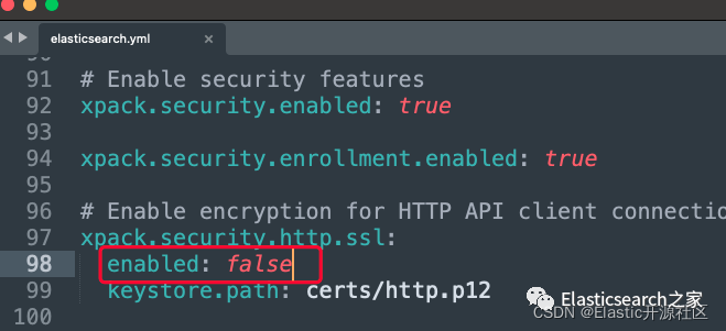 这是正常现象,因为 Elastic 8 默认开启了 SSL,将默认配置项由true改为false即可