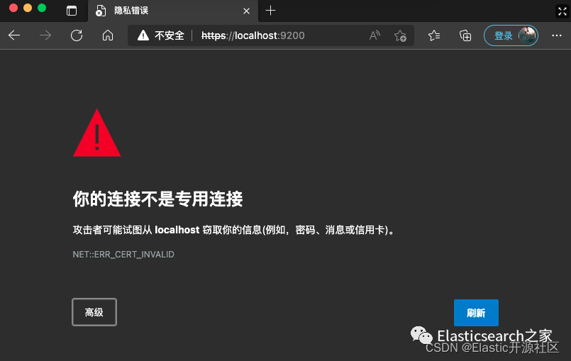 在7.x的版本是通过如下地址访问ES服务:http://localhost:9200/ 但是在 8.x 的版本访问会看到如下页面:
