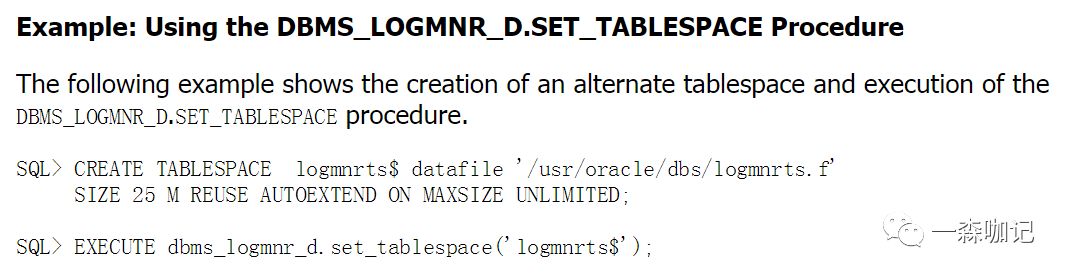 官方文档创建logmnr专用的tablespace给的示例如下: