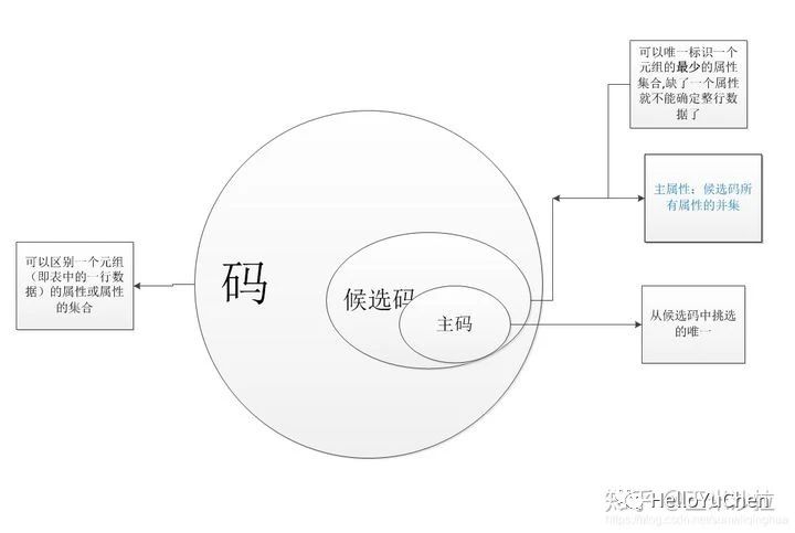 候选码、主码、全码、外码、主属性、主键、主关键字、非主属性