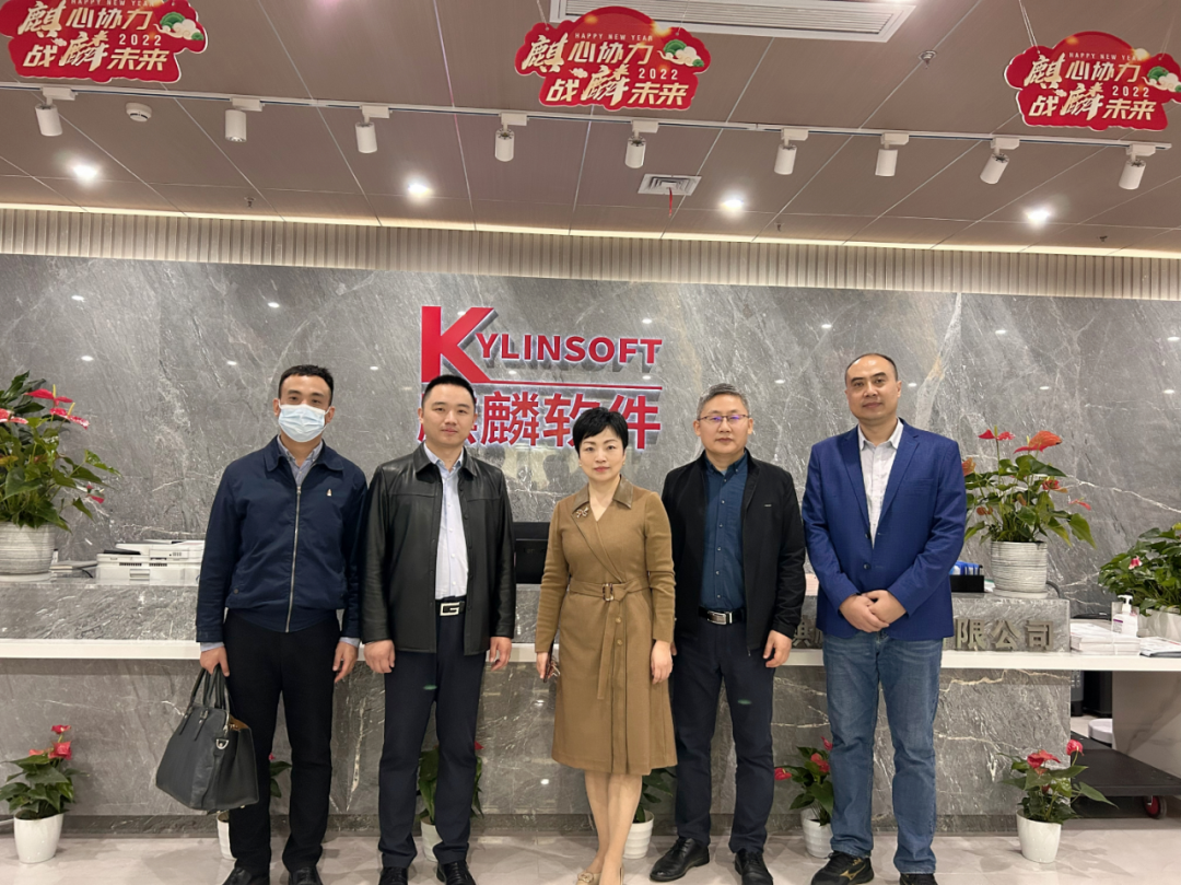 彭涛(左二)和黄睿智(左三)莅临麒麟软件(长沙)调研考察