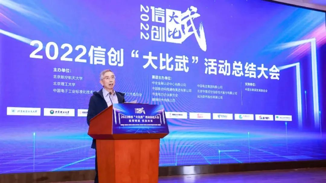 近日,2022信创“大比武”活动总结大会(简称大会)在北京成功举办。本次大会以“应用赋能 创新未来”为主题,由北京航空航天大学、北京理工大学、中国电子工业标准化技术协会信息技术应用创新工作委员会(简称信创工委会)共同举办。大会以引领技术升级、推动生态繁荣、促进行业应用、加强人才培养为目标,重点围绕信息技术成果展示及应用推广,实现理论研究与实践创造相结合、技术创新与生态完善相结合,共同营造繁荣有序的创新生态。与会嘉宾均表示希望信创“大比武”活动能够长期持续的举办,各方力量汇聚在活动中,携手促进行业信息化技术创新能力提升,助力信息技术应用创新产业高质量发展。