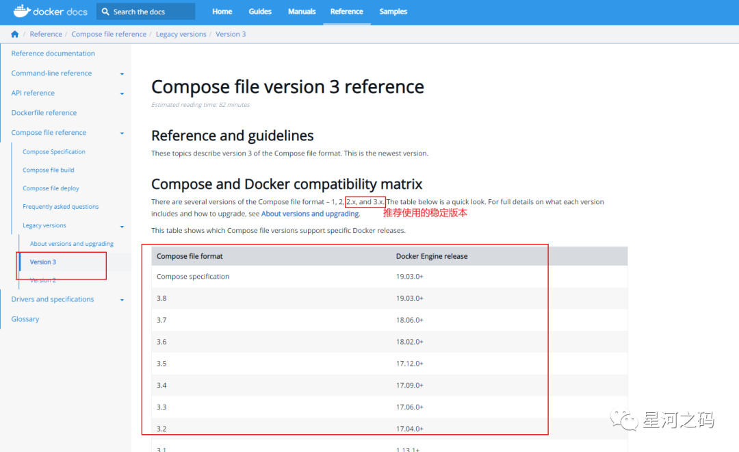 值得注意的是「在官网中,已经发布了3个大版本,推荐使用2.x 和 3.x 版本,并且每个版本对应的Docker的版本在逛网中也有指出,按照需要进行下载即可」