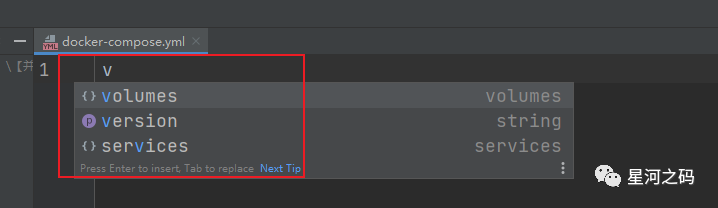 当我们安装了docker插件之后,在编写docker-compose.yml的时候是有补全的