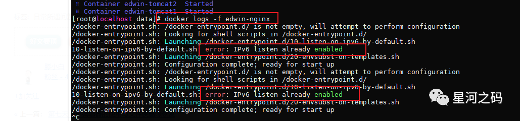 - edwin-nginxdocker-compose.yml还有很多的节点,因为这里用不上,就没有一一写上去,完整的节点信息可以关注我的公众号【星河之码】,回复【Docker-compose】获取。