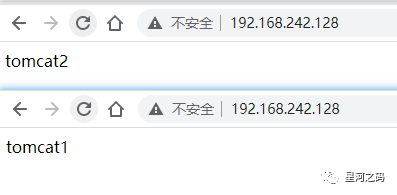 http://192.168.198.128访问Nginx会以轮询的方式请求两个tomcat,如下