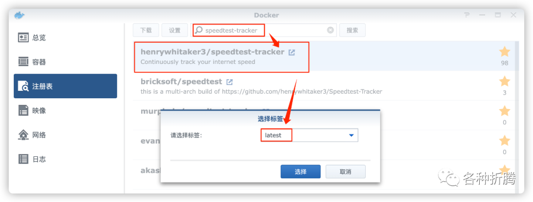 ,选择第一个 henrywhitaker3/speedtest-tracker