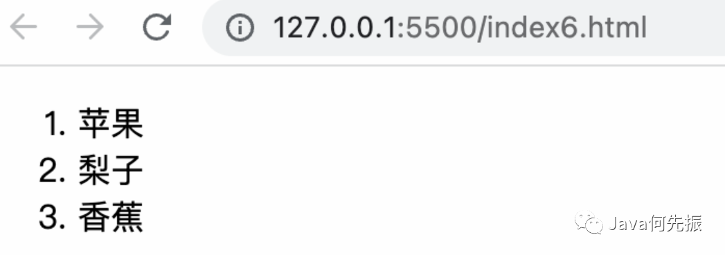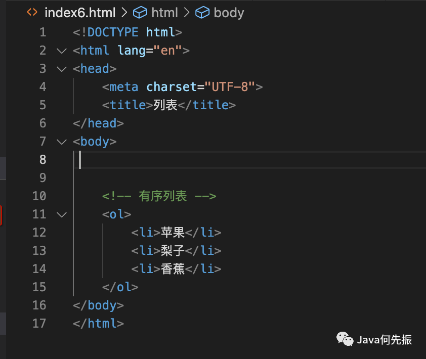 有序列表,使用 ol标签 来创建有序列表,