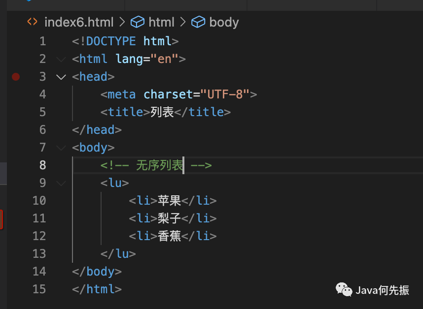 无序列表使用 ul标签 来创建无序列表,
