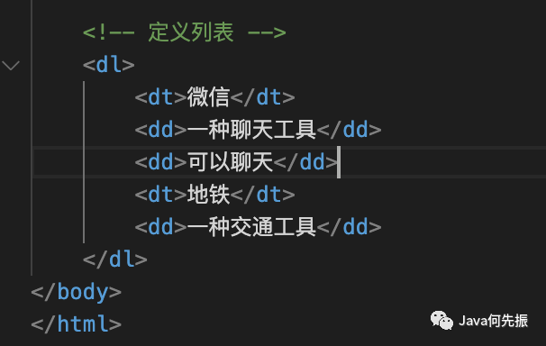 使用 dl标签 来创建一个定义列表;