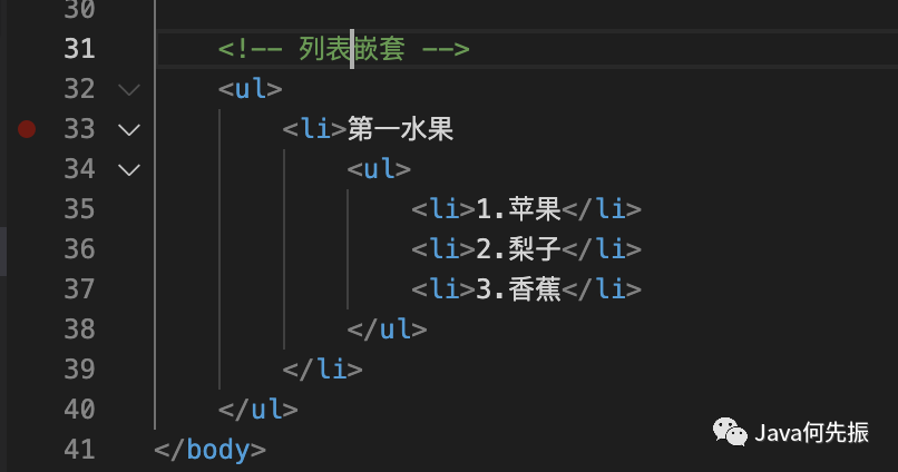 列表之间可以互相嵌套。例如 li标签 列表项中嵌套一个列表。