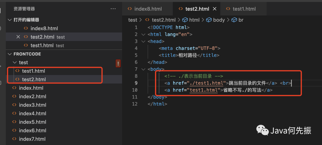 ./ 可以省略不写。./ 表示当前文件所在的目录,例如test2页面跳转test1页面,他们都属于test文件夹,属于当前目录,可以使用 ./ 。