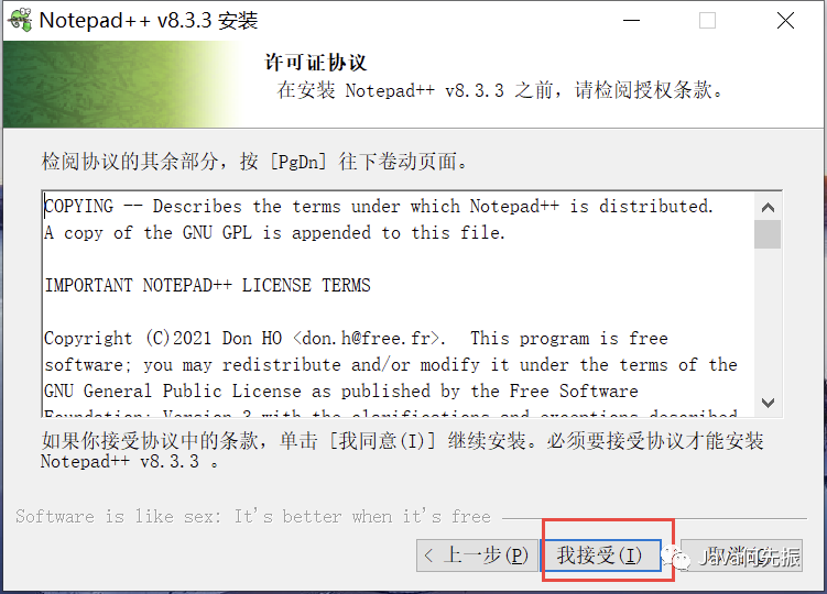 下载安装包,可以百度搜索Notepad++,官网下载安装包,如果不想去官网下载的话,可以微信搜索Java何先振,在公众号里输入Notepad++,即可获取安装包。