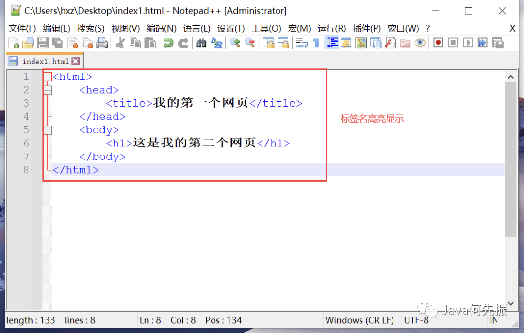 现在我们可以使用安装好的软件,编写第二个网页。保存时文件名后缀使用“.html”,这个时候文本中的标签会高亮显示。编写时还会给出相应提示。