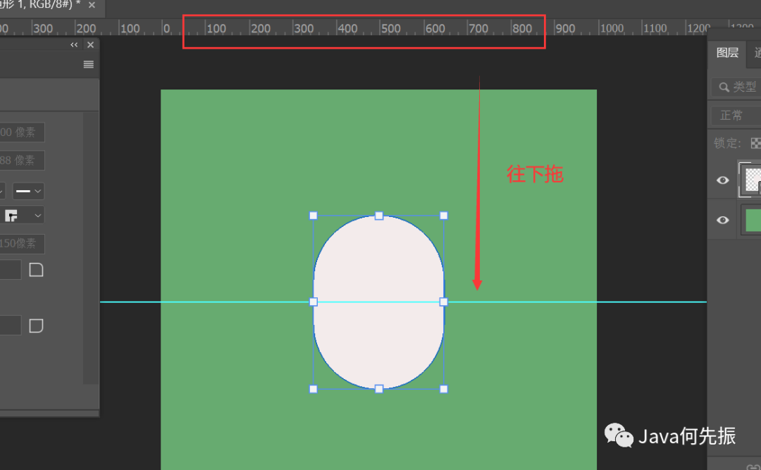 按Ctrl+T启动自由变化工具,找到胶囊的中心位置,方便切掉上半部分。