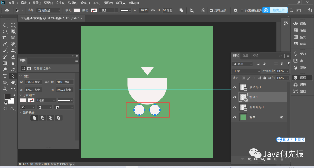 1、用到了图形工具中的布尔运算-用到了相减的方式。