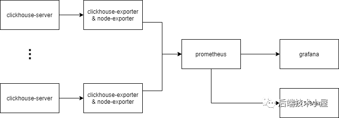 业界常用的监控方案一般是基于Prometheus + Grafana生态。本文将介绍由clickhouse-exporter(node-exporter) + Prometheus + Grafana组成的监控方案。