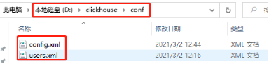 (1) 创建目录:D:/clickhouse/data 和 D:/clickhouse/log
