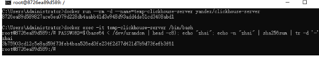 (1) 进入临时容器 temp-clickhouse-server ,Windows控制台继续执行命令