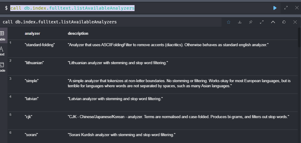 call db.index.fulltext.listAvailableAnalyzers