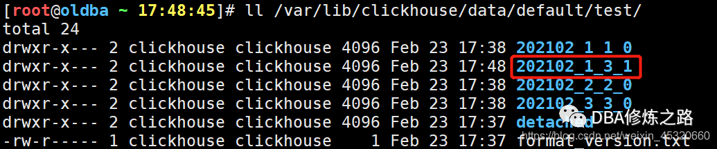 CREATE TABLE default.test1( id UInt8, name String, age UInt8, shijian Date)ENGINE = MergeTree()PARTITION BY toYYYYMM(shijian)ORDER BY idSETTINGS min_rows_for_compact_part = 2, index_granularity = 8192;