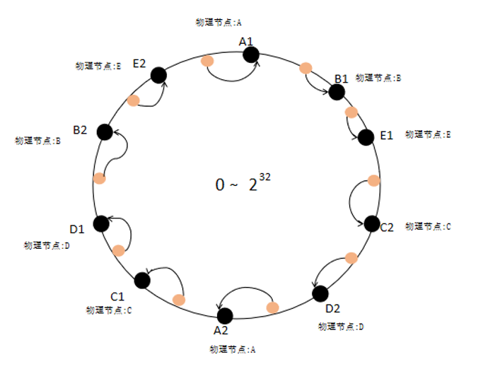 虚拟节点的一致性哈希算法的意义在于:当增加或者删除节点时,只影响变动节点临近的一个或两个节点,哈希表的其他部分保持不变,某种程度上可以理解为:一致性哈希的哈希函数与节点数无关。虚拟节点主要将整个哈希空间抽象成为一个虚拟圆环,假设哈希函数的值空间为 0 − (2^32 − 1),即 32 位无符号整数,此值可以根据实际部署规模调整,默认为:1024(虚拟节点总数M)。