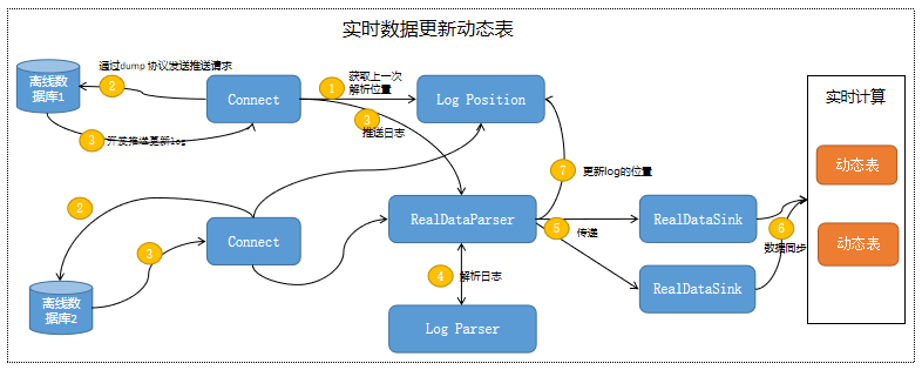 1) 离线数据开始推送INSERT、UPDATE、DELETE的更新Log数据;