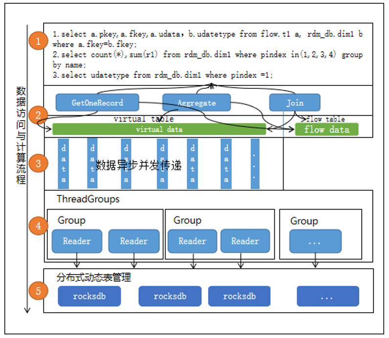 是单节点存储引擎,具备良好高效的存储性能,可满足实时计算数据存储与计算的秒级性能要求,利用 RocksDB 存储引擎良好的性能,通过虚拟节点一致性哈希算法分布均衡存储,结合简易的SQL来高效读写数据,设计并实现一个能够提供高效、稳定和可靠的持久化存储服务的分布式动态表管理组件。