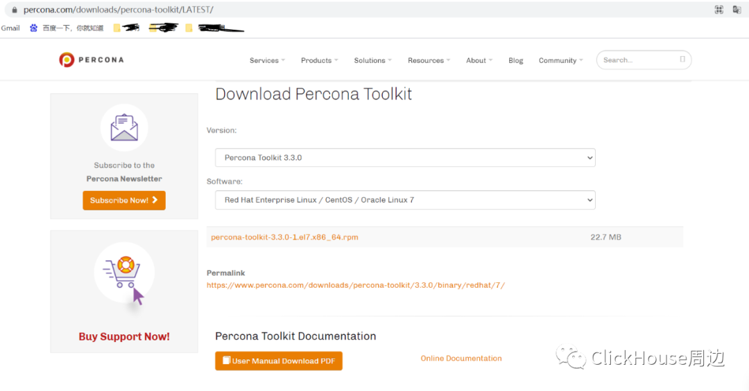 linux下载:wget https://www.percona.com/downloads/percona-toolkit/3.0.1/binary/redhat/7/x86_64/percona-toolkit-3.0.1-1.el7.x86_64.rpmyum localinstall percona-toolkit-3.0.1-1.el7.x86_64.rpm