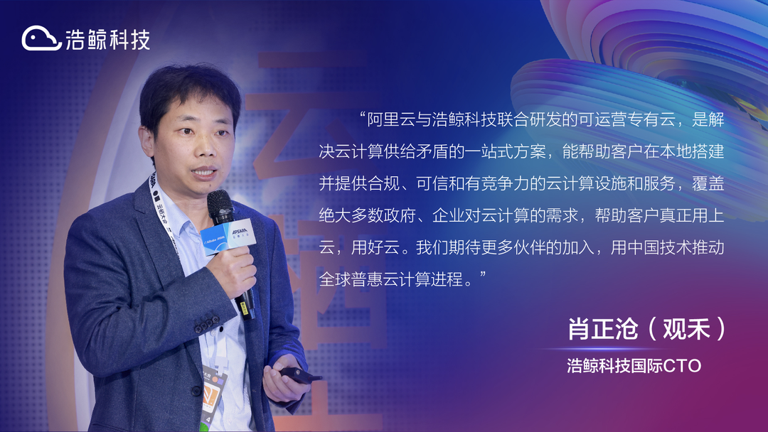 在云栖大会“专有云技术和应用实践论坛”分论坛上,浩鲸科技国际CTO肖正沧受邀参加,进行《开放.共融.可运营专有云》主题演讲并发布可运营专有云产品方案, 基于阿里云底座和浩鲸科技云MSP在运营支撑域的深度积累, 为全球客户提供全场景的云计算业务运营服务。
