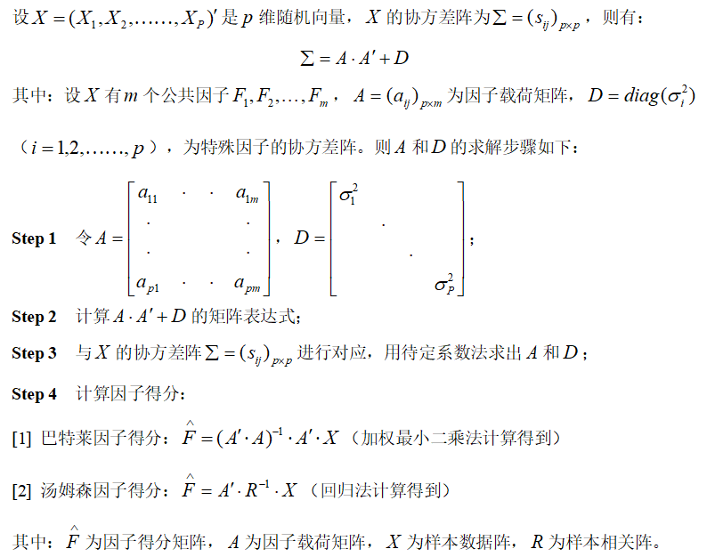 因子分析是用少数几个新变量(因子)的线性组合来表示多个原变量之间的关系,且尽可能多地反映原变量的信息。其计算步骤是: