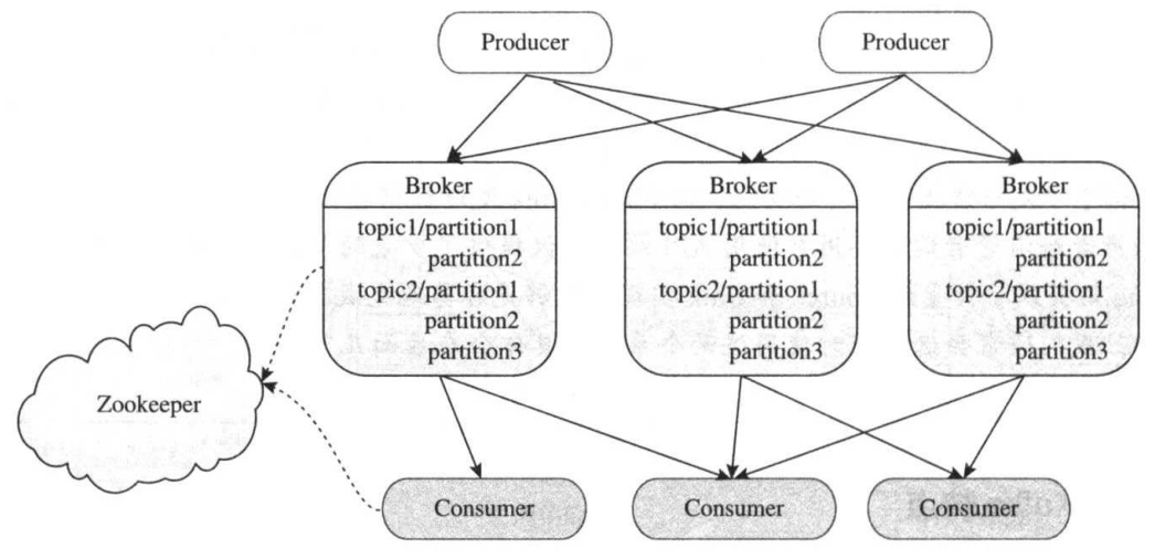 Kafka的架构由Producer、Broker和Consumer三类组件构建。其中Producer将数据写入Broker,Consumer则从Broker上读取数据进行处理,而Broker构成了连接Producer和Consumer的“缓冲区域”。Broker和Consumer通过Zookeeper做协调和服务发现。多个Broker构成一个可靠的分布式消息存储系统,避免数据丢失。此外,Broker中的消息被划分成多个Topic,同属一个topic的所有数据按照某种策略被分成多个partition,以实现负载分摊和数据并行处理。