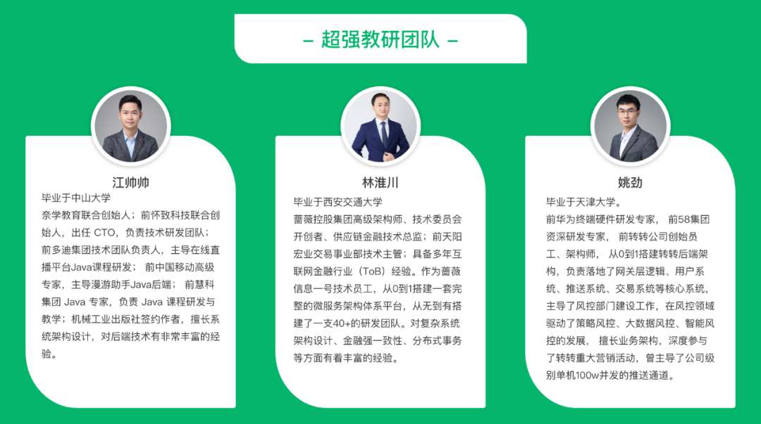 精品课程内容由3大篇章15个模块构成,包括MySQL架构设计深入剖析篇、千亿级企业海量数据分库分表方法论提炼篇、千亿级企业海量数据真实案例设计与实践等核心实战内容,通过通俗易懂的企业案例式讲解,带你真正掌握架构师级MySQL海量数据设计与实践,从而在成为优秀架构师的路上越走越快!