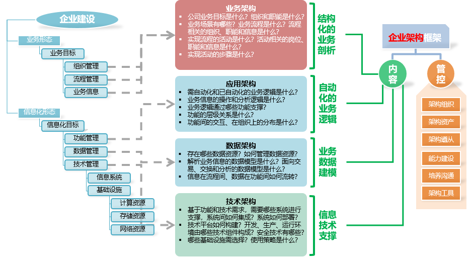 数据架构描述了组织的逻辑和物理数据资产和数据管理资源的结构。它是企业架构的一个分支,包括管理组织中数据的收集、存储、排列、集成和使用的模型、策略、规则和标准。数据架构的目标是将业务需求转化为数据和系统需求,并管理数据及其在企业中的流动。如今,许多组织都在寻求对其数据架构进行现代化改造,以此作为充分利用 AI 和实现数字化转型的基础。以下几种企业架构框架通常用作构建组织数据架构框架的基础:■DAMA-DMBOK 2. DAMA International 的数据管理知识体系是专门用于数据管理的框架。它提供了数据管理功能、可交付成果、角色和其他术语的标准定义,并提出了数据管理的指导原则。■Zachman 企业架构框架。Zachman 框架是 1980 年代由 IBM 的 John Zachman 创建的企业本体。Zachman 框架的“数据”列包含多个层次,包括对业务重要的架构标准、语义模型或概念/企业数据模型、企业/逻辑数据模型、物理数据模型和实际数据库。■开放组架构框架 (TOGAF)。TOGAF 是一种企业架构方法,为企业软件开发提供高级框架。TOGAF的C 阶段包括开发数据架构和构建数据架构路线图。