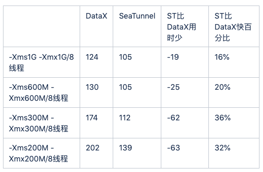 为了让大家对测试结果有一个更直观的概念,我们采用了对比测试的方法。熟悉数据集成领域的人应该了解,DataX是目前数据开源同步引擎里,性能较好的同步工具之一,这次SeaTunnel做对比的对象,正是这款目前在数据集成领域使用较多的开源同步引擎。
