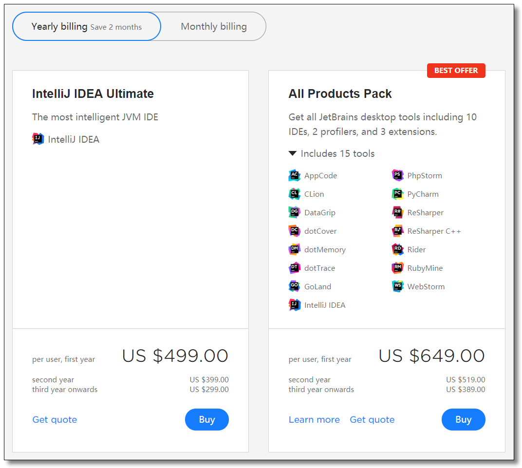 (左侧),JetBrains 全家桶(右侧)的价格是$649.00