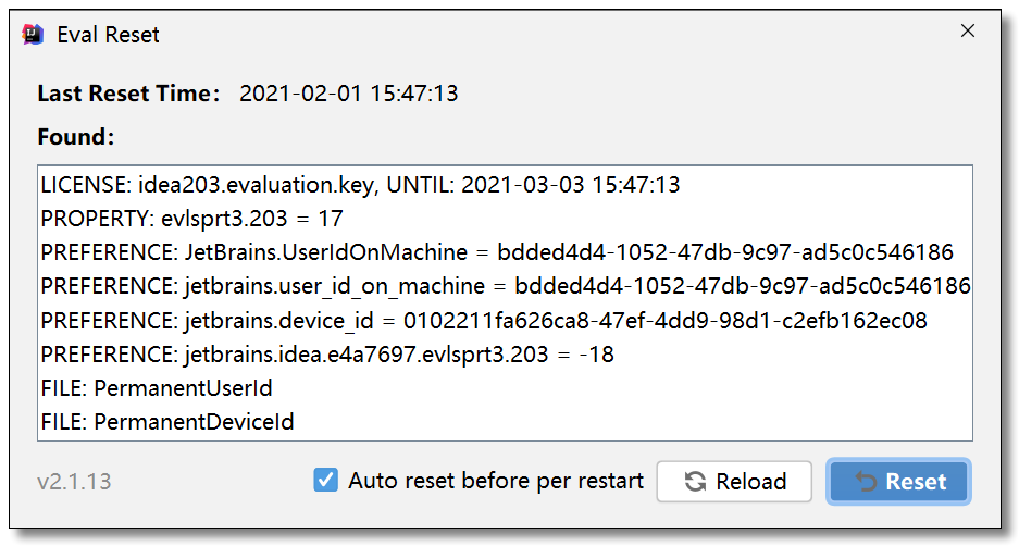 如果勾选了,则自勾选后每次重启/退出 IDE 时会自动重置试用信息,你无需做额外的事情。(此为自动重置方式)