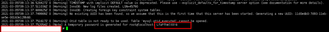 执行上述命令后,如下图所示,红色框中为初始化密码,要记住