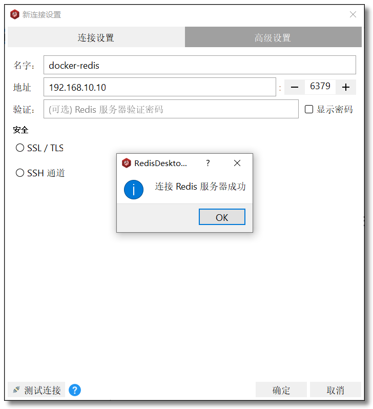 连接容器中的 Redis 时,只需要连接宿主机的 IP + 指定的映射端口即可。