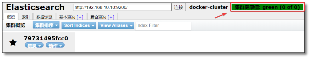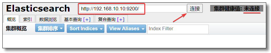 在浏览器中打开 elasticsearch-head 页面,填入 Elasticsearch 地址。